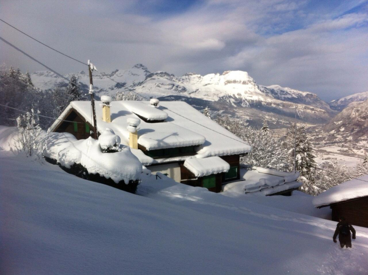 It is in the mountains and accessible only by foot. The parking place is 300 meters above the chalet or you can reach it by a path in the snow: it is a beautiful and quiet place. The view is superb.