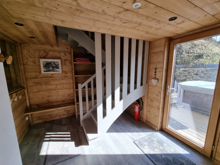 The Chalet du Vernay offers 200 m² of space in the form of a triplex. Outside: private parking for 4 cars, a large garden with trees and an adjoining wooded area, a huge 100 m² terrace with Jacuzzi and no facing walls.