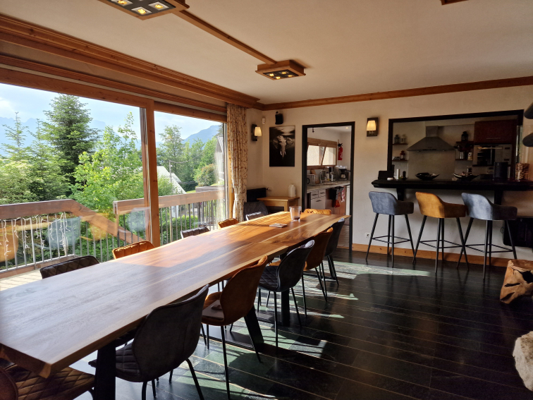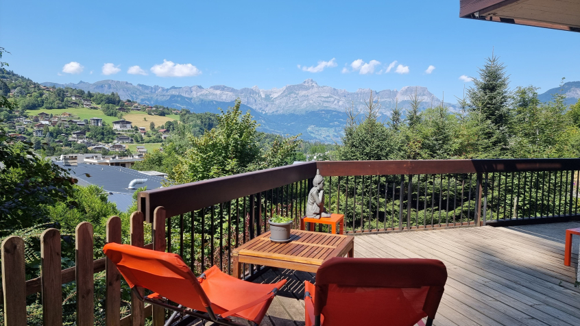 Chalet du Vernay's location in a quiet residential street is ideally positioned to benefit from sunshine from midday to evening, with exceptional views of the Aravis and Fiz mountain ranges from the terrace, Jacuzzi and every room in the chalet.