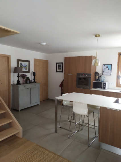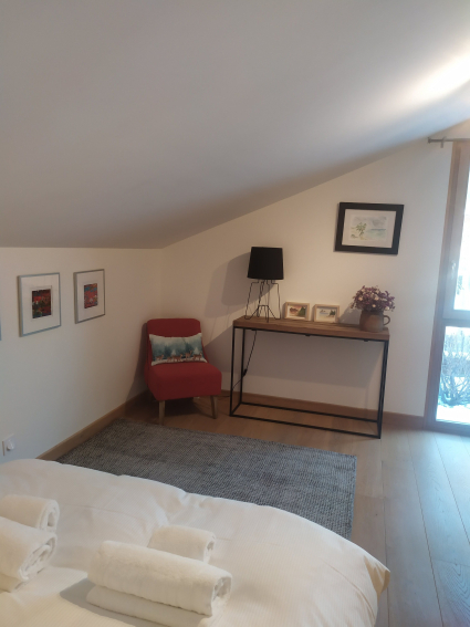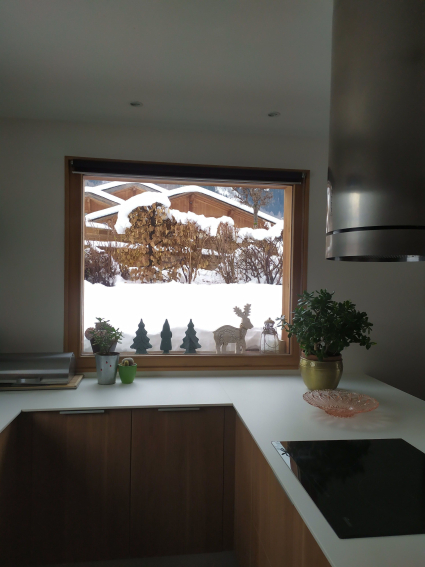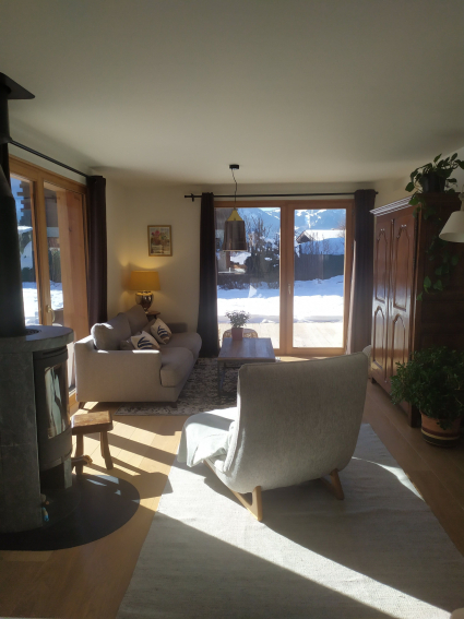 It is a spacious (130m²) and bright interior features. It's a very sunny place with large bay windows. It's close ( 200m) to bus shuttles and train station desserving ski resorts and the center of Chamonix.