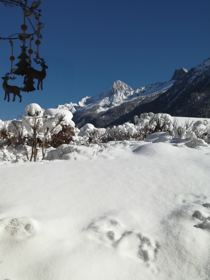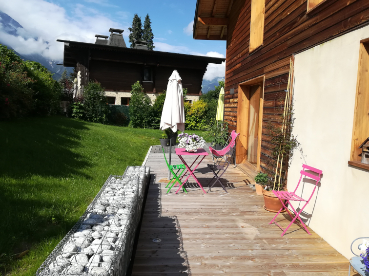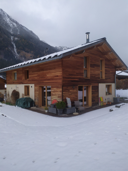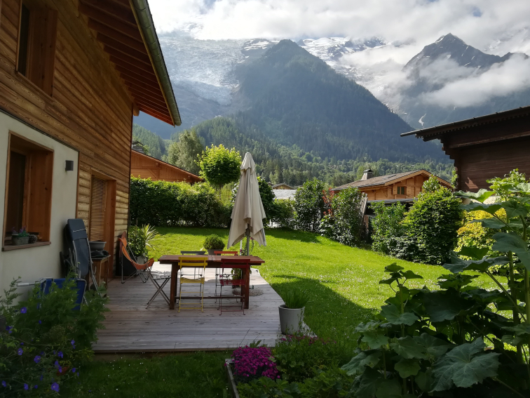 Chalet récent orienté Sud + Ouest, très lumineux, bénéficiant d'une vue exceptionnelle sur le Massif du Mont-Blanc et particulièrement sur le Glacier des Bossons. Il est proche (200m) des transports en commun (train + bus) qui desservent l'ensemble de la vallée et situé dans un lieu calme.