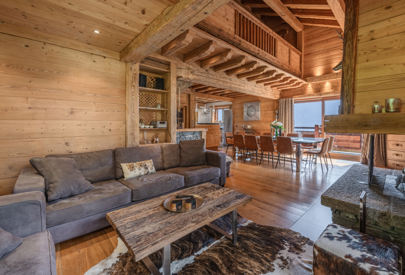 Le chalet Cocoon est une construction neuve en bois ancien traditionnel. Aucune dépense n'a été épargnée pour doter l'habitation de matériaux et finitions de première qualité. Les parquets et les portes anciennes agrémentées de fer forgé se mêlent à des éléments modernes sophistiqués tels que la cuisine en béton poli et l'éclairage design. Le chalet a été conçu par un antiquaire qui a fait intégrer des vieux éléments tel que portes, cadres de fenêtres, poutres venant de France, Suisse, Autriche et Espagne. Ceci agrémenté d’un éclairage indirect par des spots LED encastrés et un mobilier moderne ( inox et vieux bois ) et de la décoration montagnarde haut de gamme ( peaux de vache, etc ). Le chalet dispose d’un chauffage au sol et d’une isolation exceptionnelle ( classe énergétique B ! ). Tout ceci crée une ambiance très cosy et cocoon. D’où le nom du chalet….