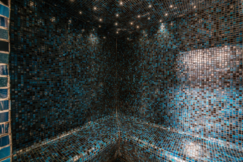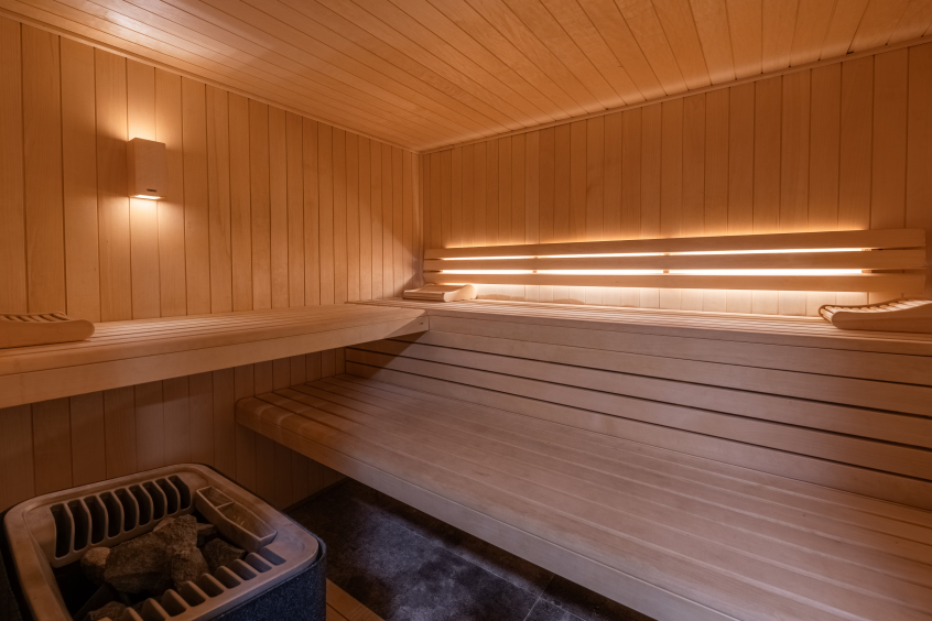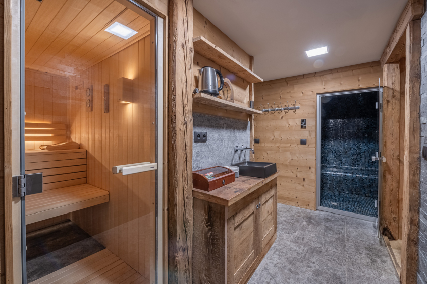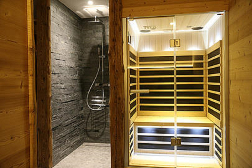 Espace wellness avec sauna pour 5/6 personnes, hammam pour 4/5 personnes, cabine à infra-rouge pour 2 personnes, douche, pièce de repos et tisanerie, à partir de juillet 2015