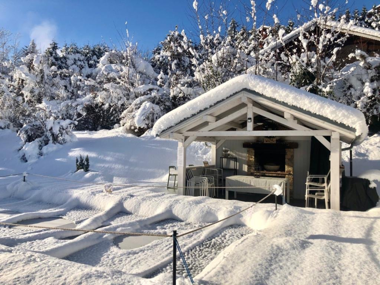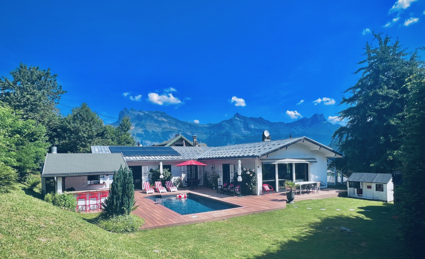 En été, vous pourrez profiter du magnifique jardin et de la piscine chauffée (ouverte de mai à septembre) offrant une vue imprenable sur les montagnes et la nature environnante.