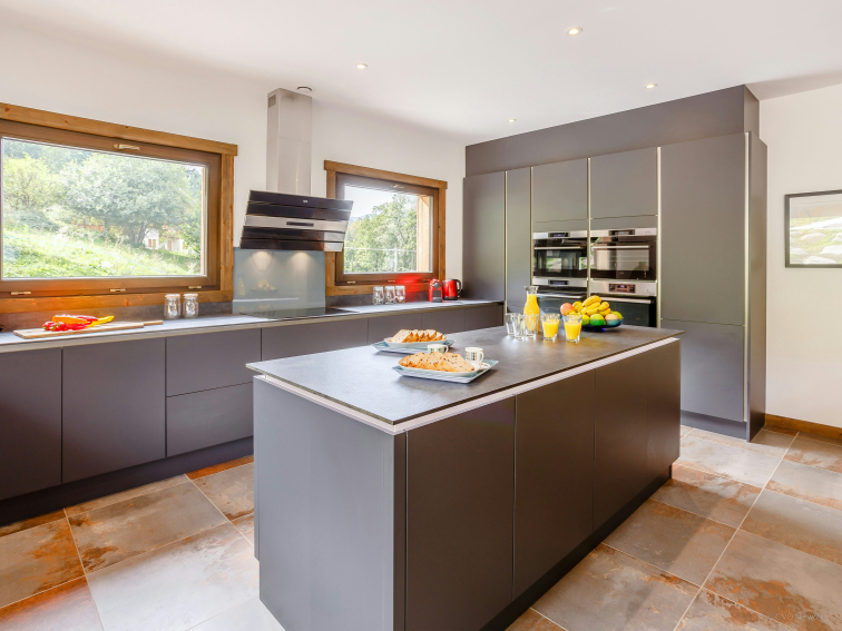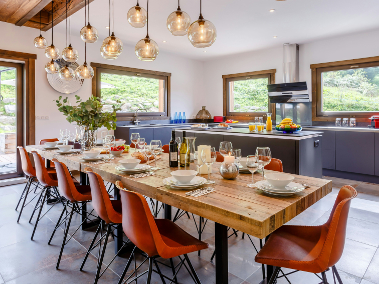 L’espace ne manque pas au Chalet Woodman ! La vaste pièce de vie, baignée de lumière grâce à ses grandes baies vitrées, s’ouvre sur la terrasse. Vous pourrez vous retrouver confortablement installés dans les grands canapés, parfaits pour partager des moments conviviaux en famille ou entre amis. La cuisine moderne et élégante, entièrement équipée, ainsi que la buanderie, ajoutent au confort du chalet.