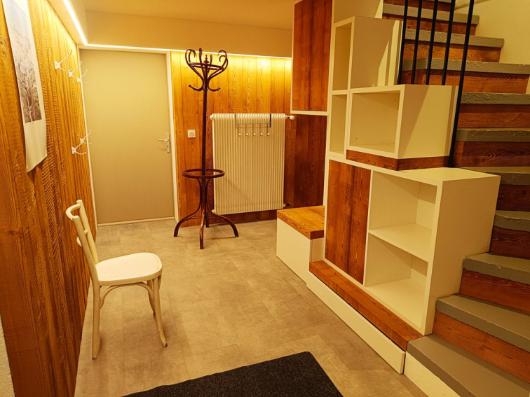 Au rez-de-chaussée, l’entrée se fait par une grande pièce qui pourra accueillir vos skis, vélos, luges et poussettes en toute sécurité. Ensuite une pièce pour déposer manteaux et chaussures vous permettra d’accéder au premier étage.