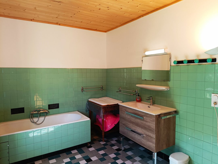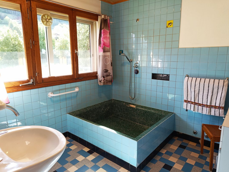 Au 2ème étage vous trouverez une salle de douche avec WC, une plus petite chambre avec deux lits simples et à nouveau deux belles chambres avec lits doubles et vue sur les montagnes.