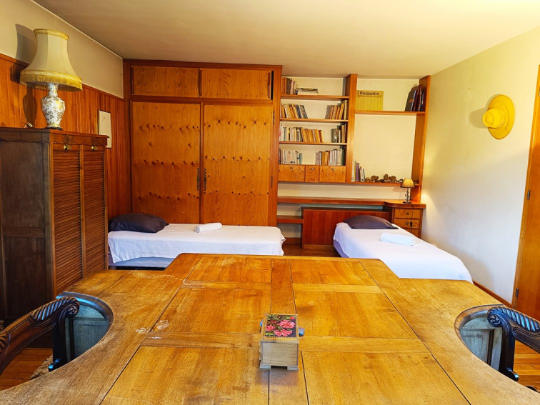 Pas vraiment en vacances car vous devez répondre à des mails ou faire un peu de télétravail ? La grande chambre est faite pour vous, elle dispose d’un magnifique bureau qui vous permettra d’être super productif pour pouvoir profiter plus rapidement des activités à faire à Saint Gervais. Deux autres chambres de deux avec un lit double chacune se trouvent également à cet étage avec un accès au grand balcon terrasse et une belle vue sur les montagnes.