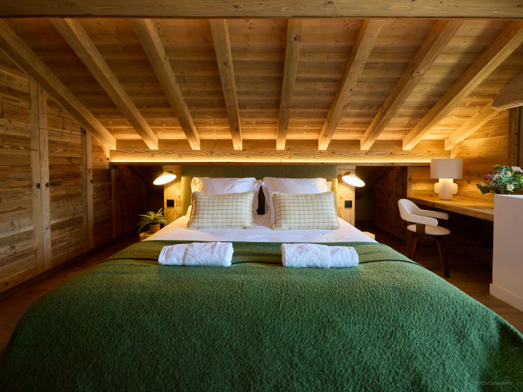 En dépit de son nom, ce chalet bien équipé n’a rien de petit. Il compte trois chambres doubles et un dortoir pour quatre enfants au rez-de-jardin, et deux somptueuses suites à l’étage du haut, chacune comprenant une vaste salle de bains, un bureau, et un accès à un balcon donnant sur le massif du Mont-Blanc.