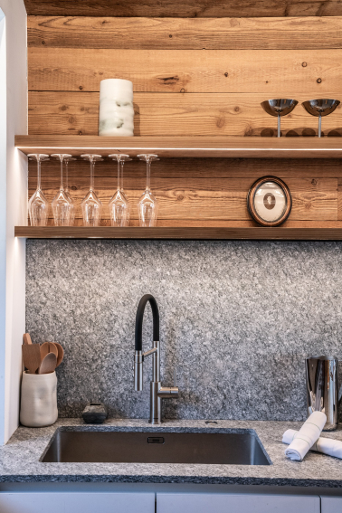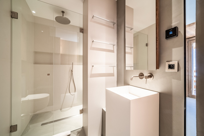 Le vaste espace de vie décloisonné est baigné de lumière grâce à de grandes baies vitrées encadrant la vue sur les sommets. Tout invite au partage, du feu crépitant dans la cheminée à la terrasse spacieuse où savourer un café au lever du soleil ou un verre au crépuscule, face aux cimes. Après une journée sur les pistes, la détente est favorisée, que ce soit lové(e) dans un canapé moelleux ou profitant d’une séance de sauna bien méritée.