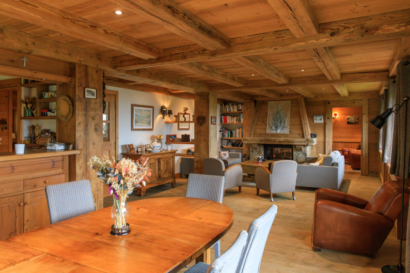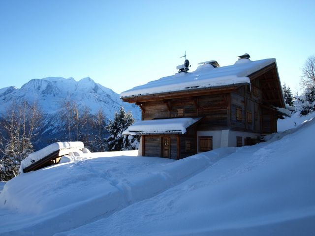 Grand chalet individuel, très confortable, entièrement rénové , vue imprenable sur le Mont Blanc, situé au centre de la station du Bettex à 1400 m d'altitude, au pied des pistes .